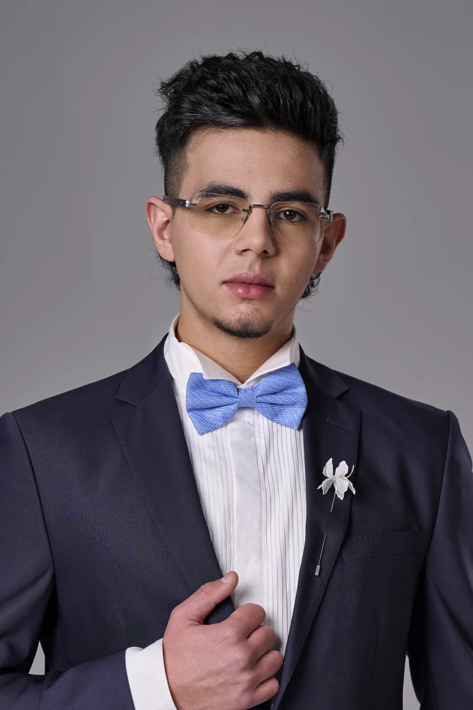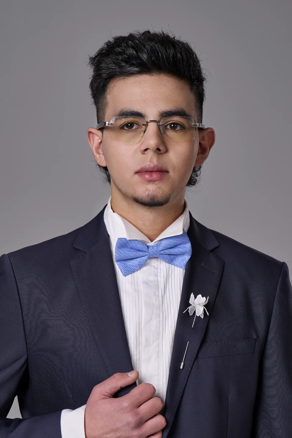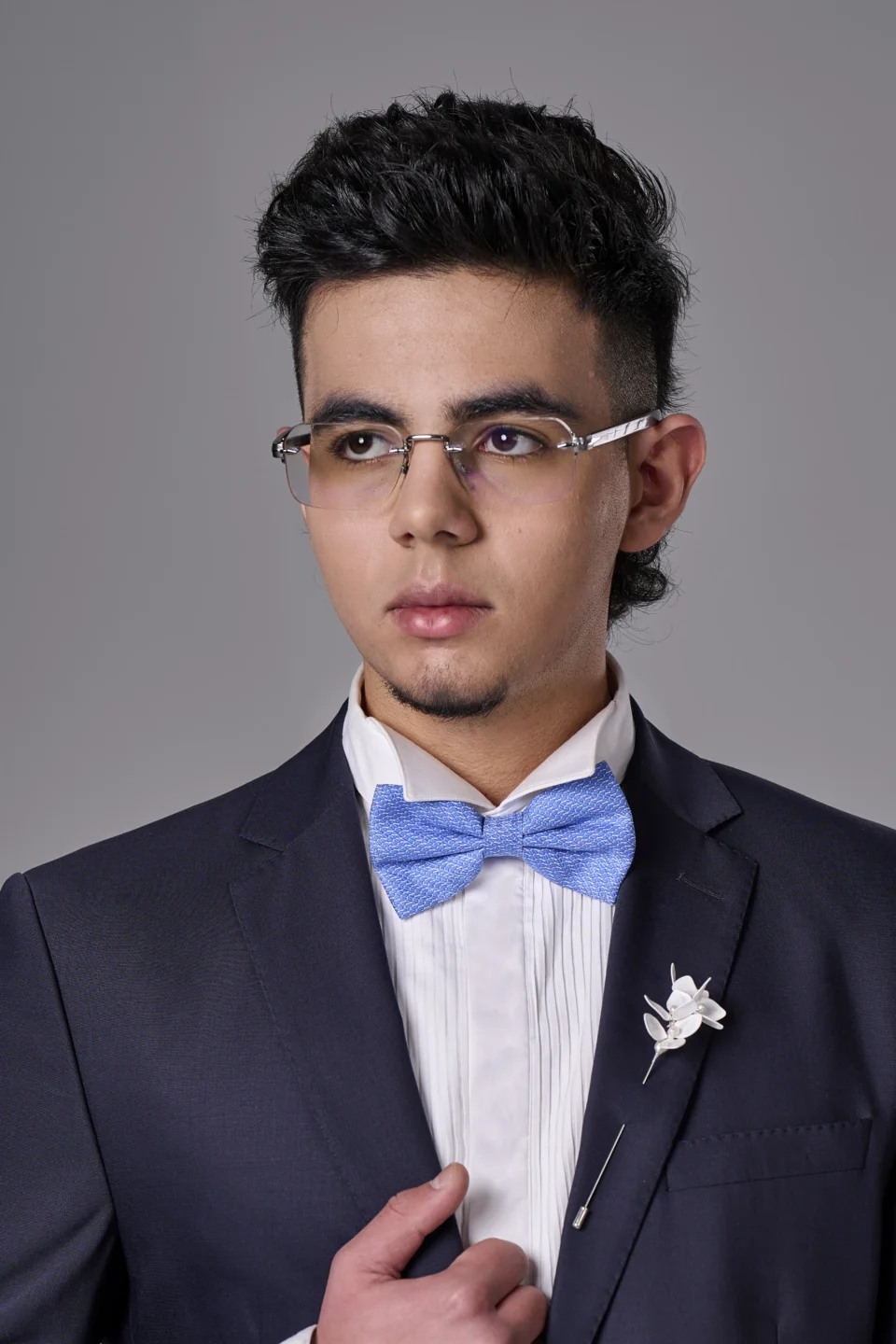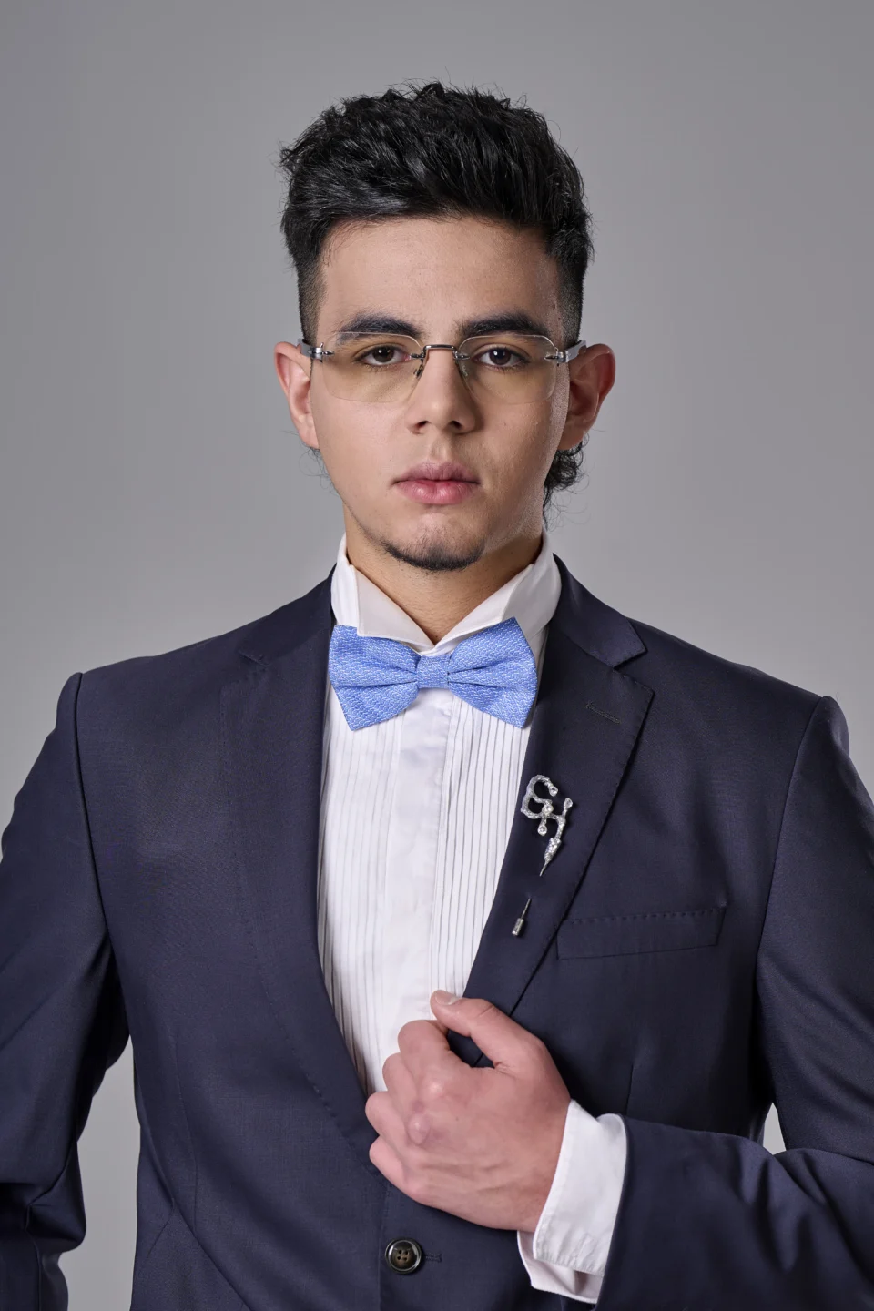 Мъжка бутониера с инициали в сребристо с цирконии
