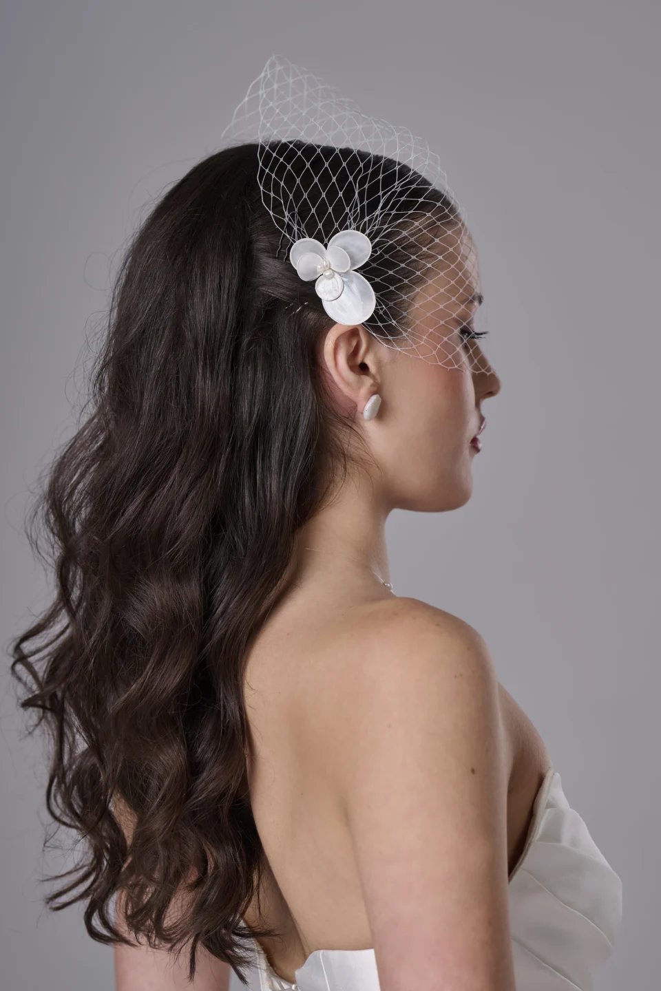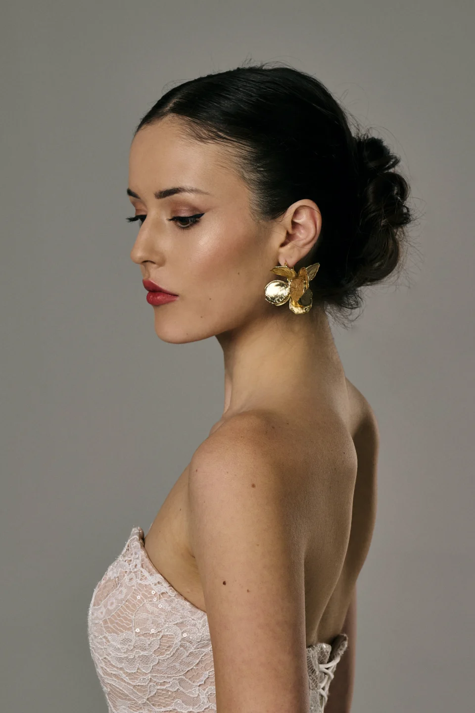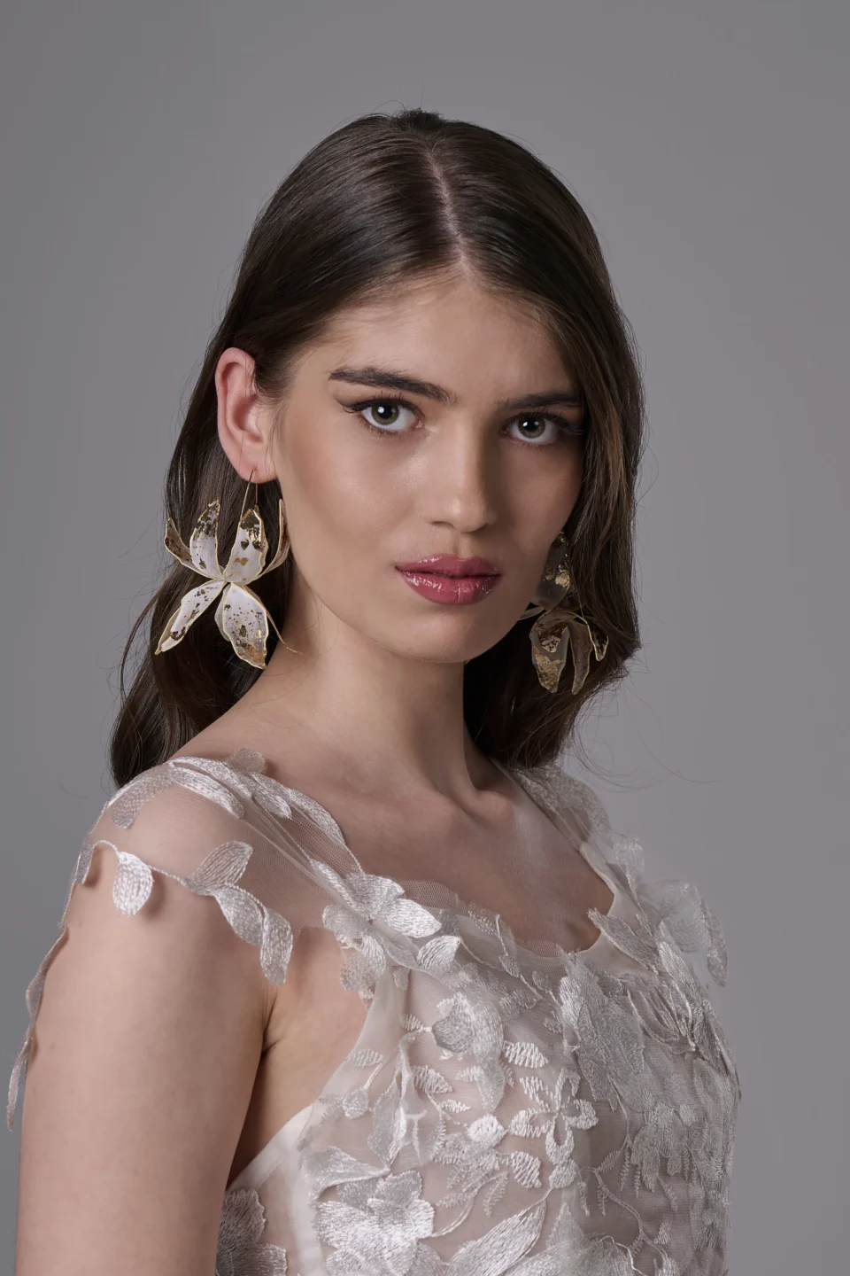 Обеци „Ириси“ в бяло със златни пръски XL размер