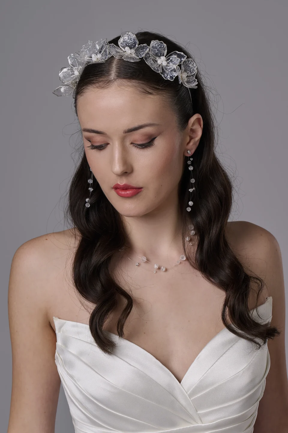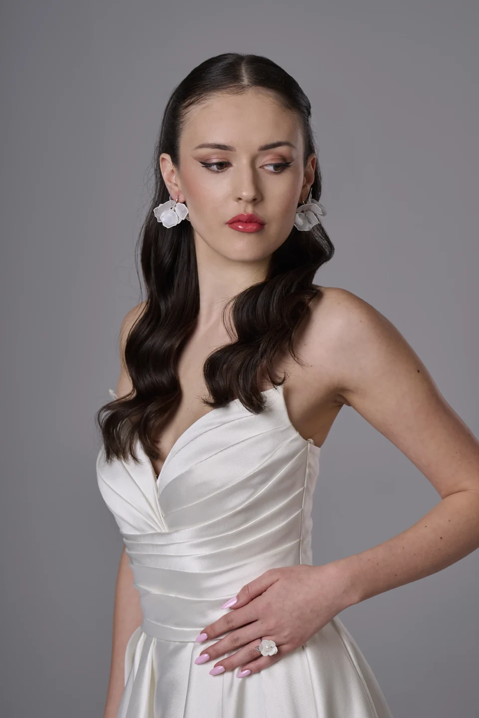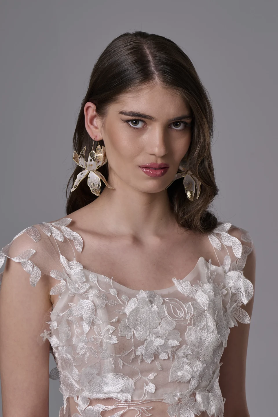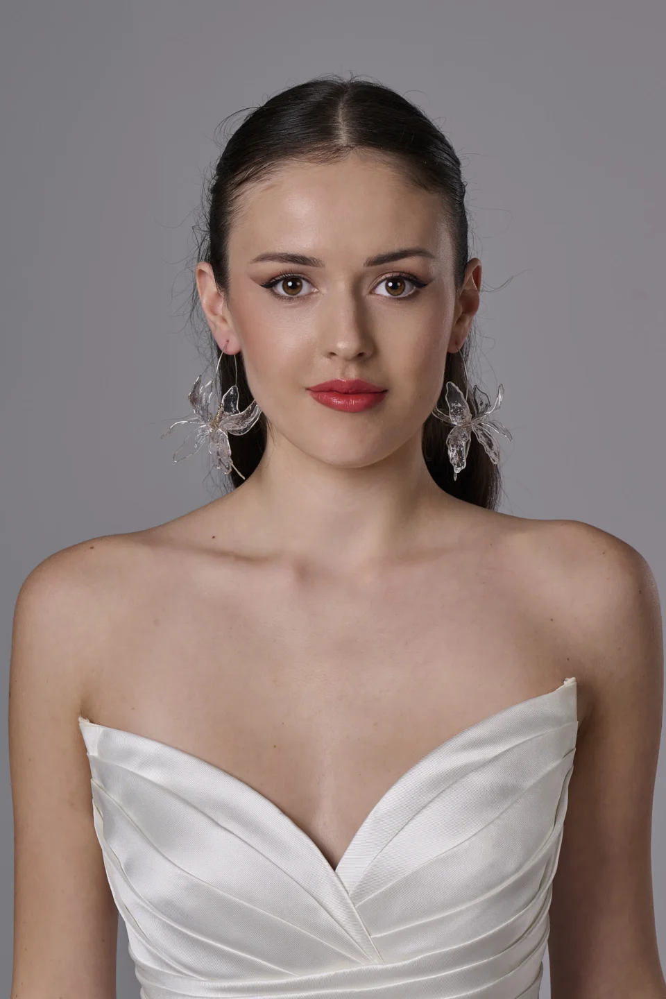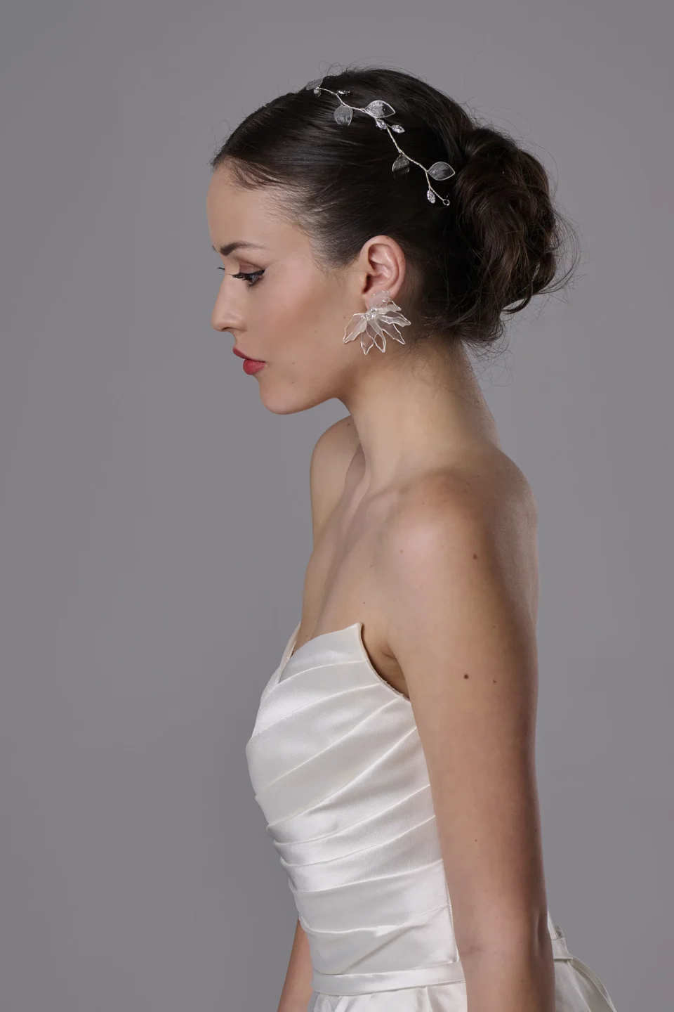 Красив обеци с цвете, кристални листа и цирконии „Мадлен“