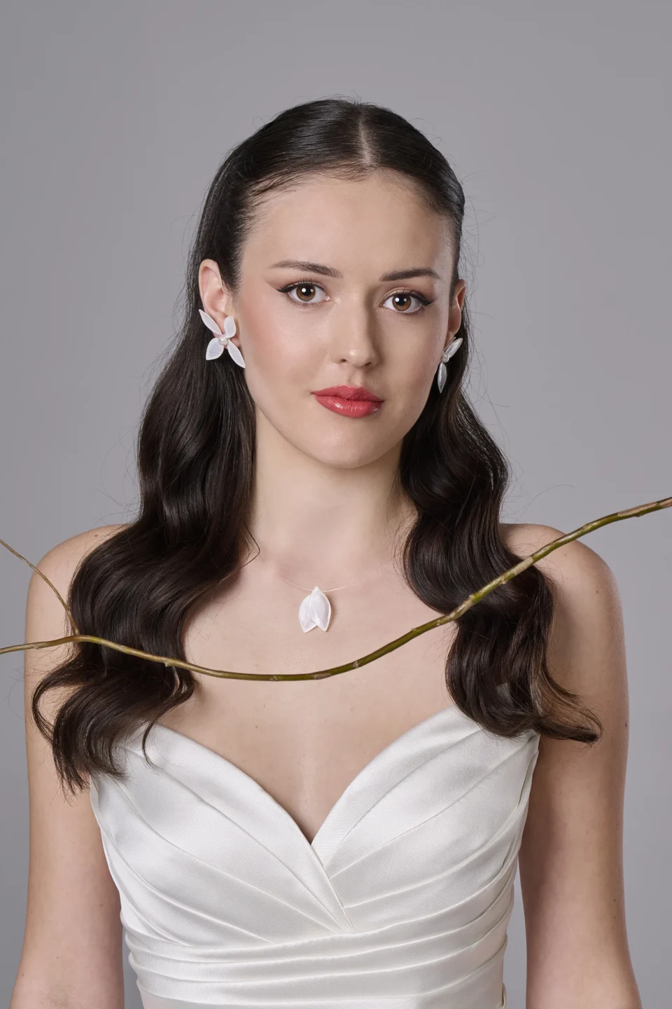 Висящи обеци с бяло листо и капковиден кристал – 2 в 1