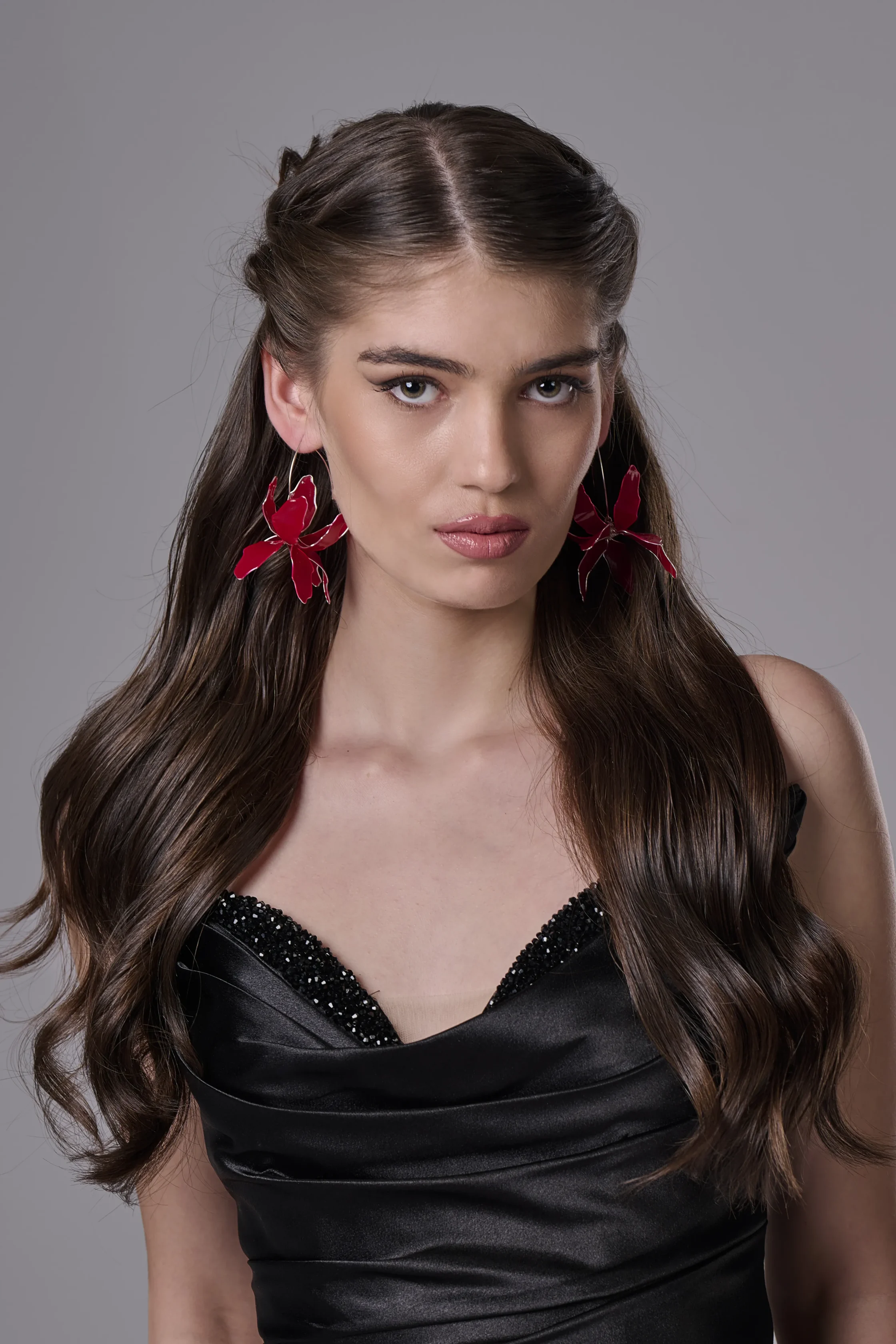 Романтичните обеци „Червени Ириси“ са създадени като израз на любов, страст и емоция. Дългите 10 см обеци с наситен червен цвят придават смел и запомнящ се акцент, идеален за Свети Валентин, романтични вечери и специални поводи.