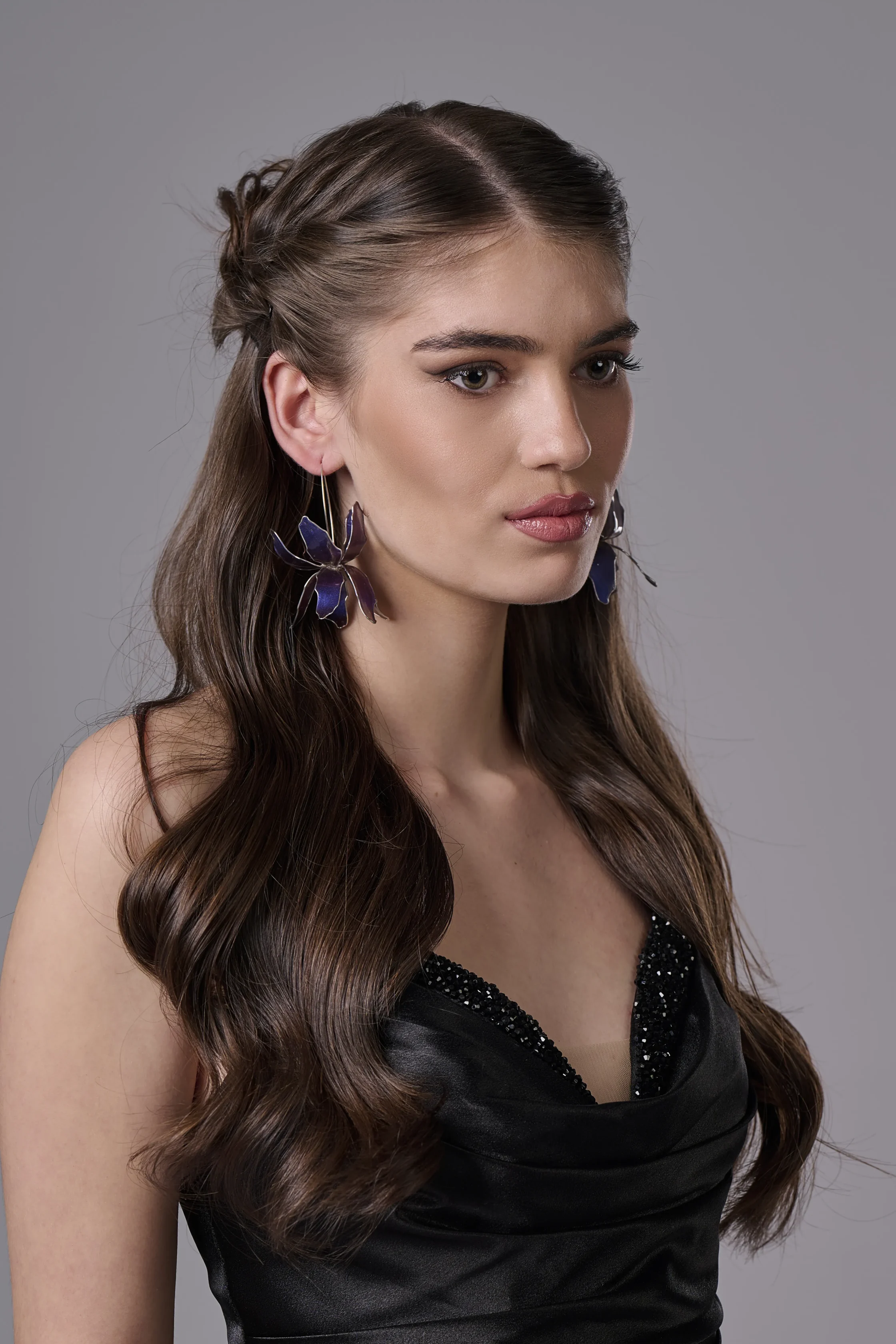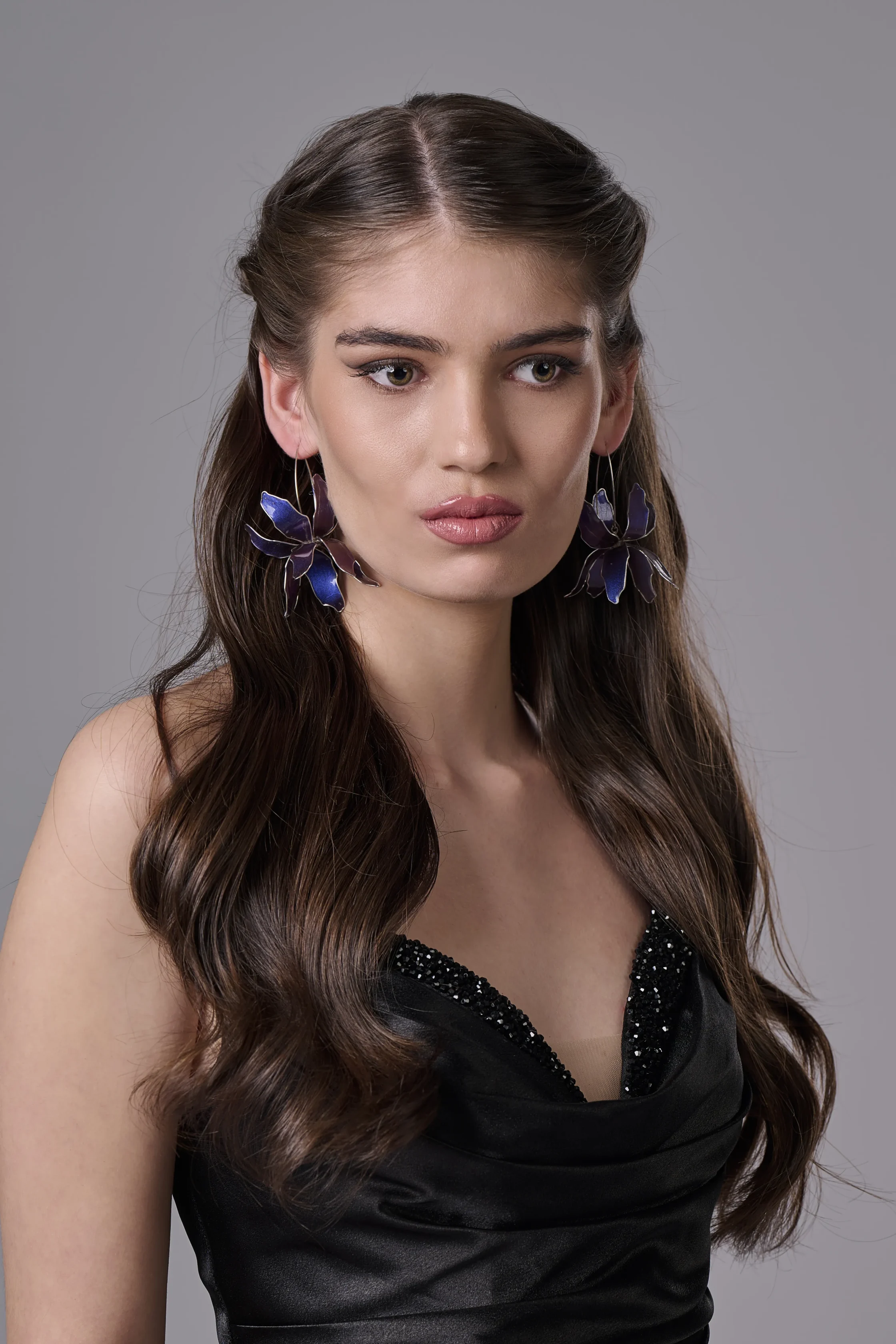 Леки и ефирни, тези лилави обеци Ирис са създадени за комфорт и стил. Куката е изработена от сребро 925, което гарантира качество, издръжливост и удобство при продължително носене. Благодарение на своя артистичен дизайн, обеците са подходящи както за официални събития, така и за специални поводи, вечерни визии или дизайнерски аутфит.