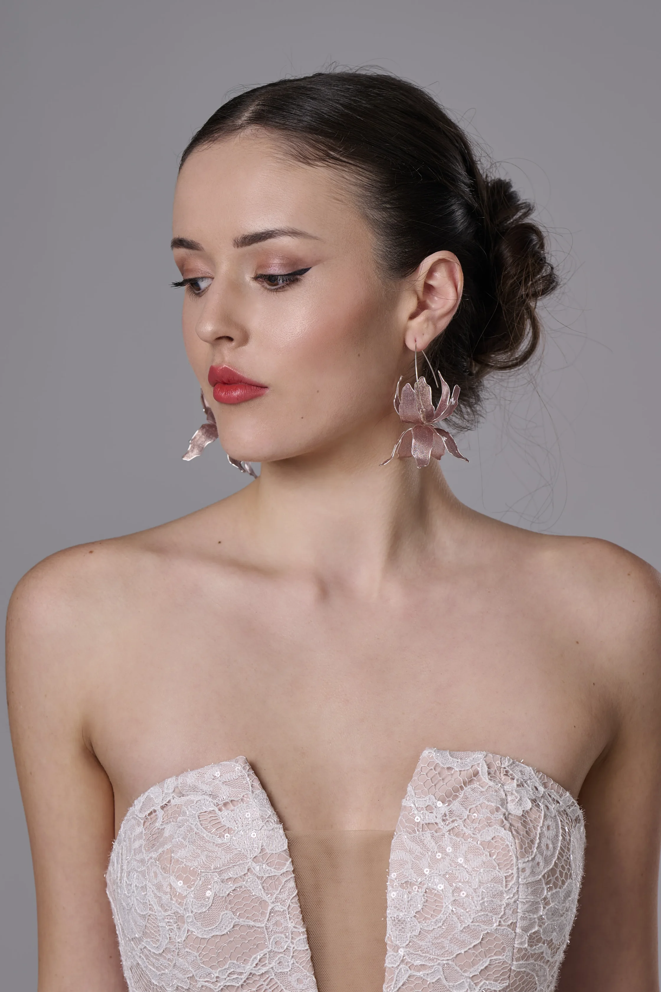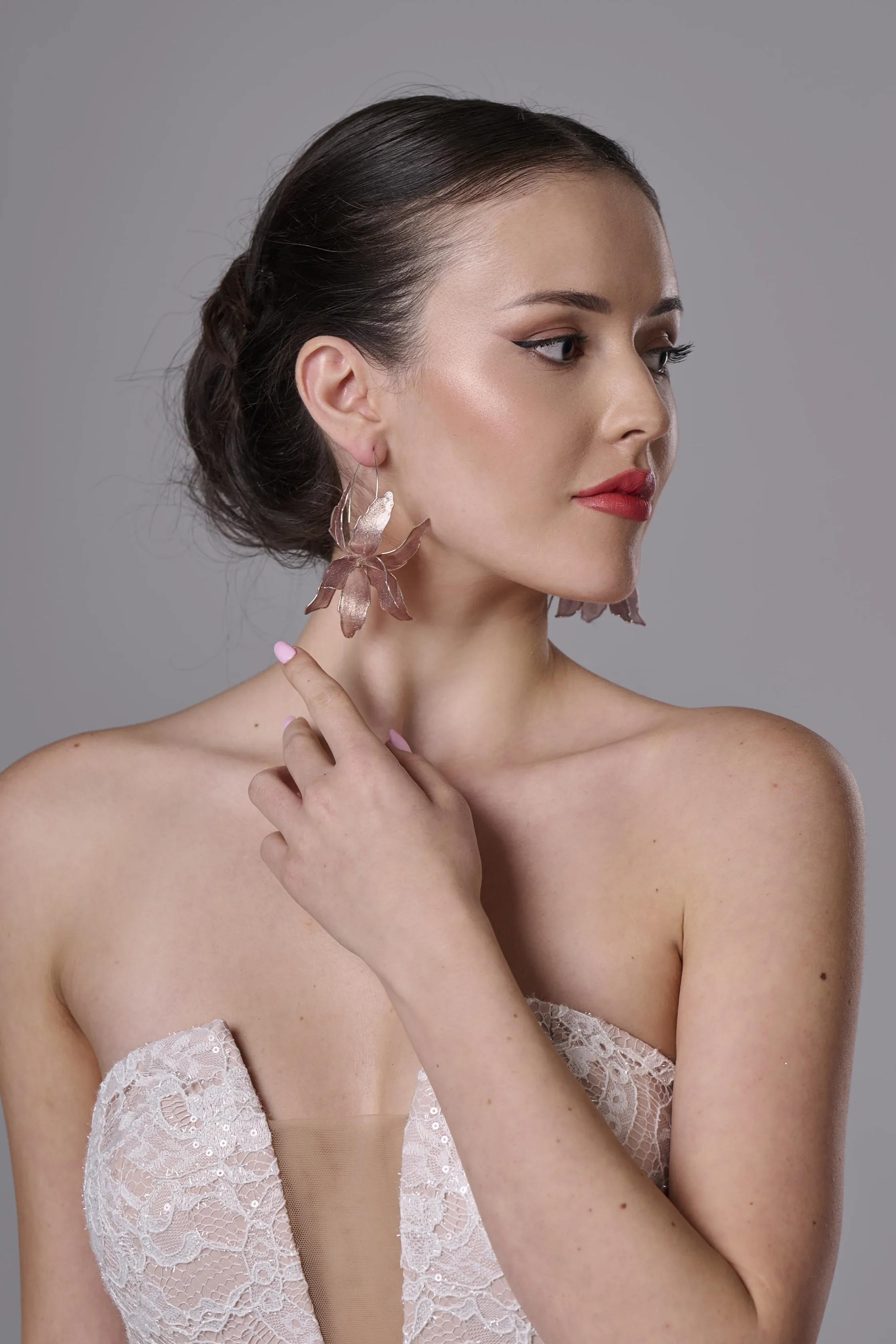 Изтънчените обеци „Розови Ириси“ са създадени за абитуриентски балове, романтични вечери и официални събития. Нежното розово с деликатни сребърни отблясъци придава мекота и ефирност, а куката от сребро 925 осигурява удобство и дълготрайност.